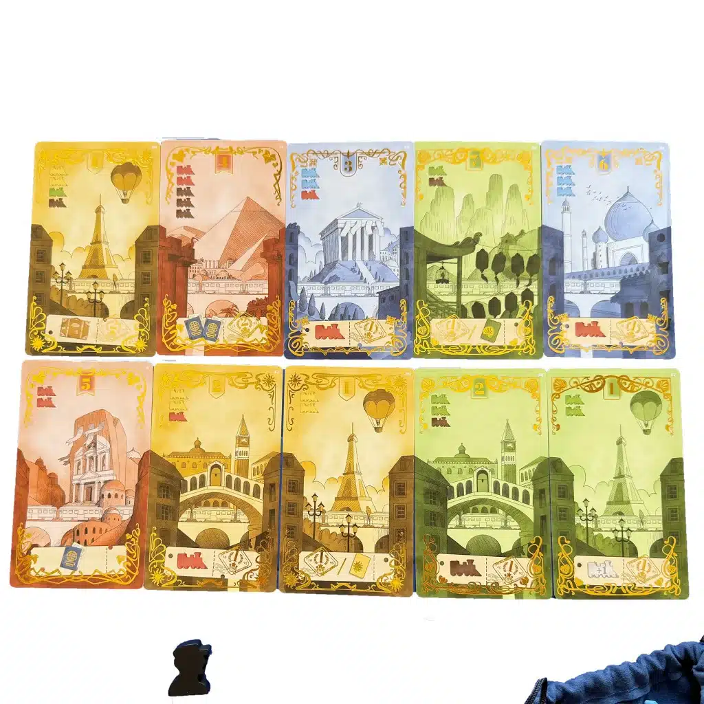 Les joueurs incarnent des voyageurs, collectant des Cartes Destination représentant les pays et régions qu’ils traversent au cours de leur voyage.