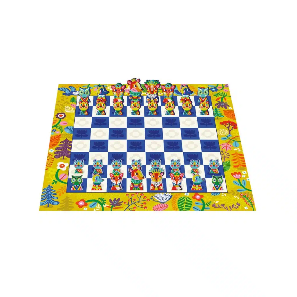 Retrouvez un grand classique chez Auzou : Le jeu des échecs – au cœur de la forêt. Découvrez ce jeu mondialement connu revisité sous les pinceaux de Helen Dardik avec des pions en forme d’animaux ! Le plateau recto-verso offre deux niveaux de jeu pour une initiation progressive aux échecs.