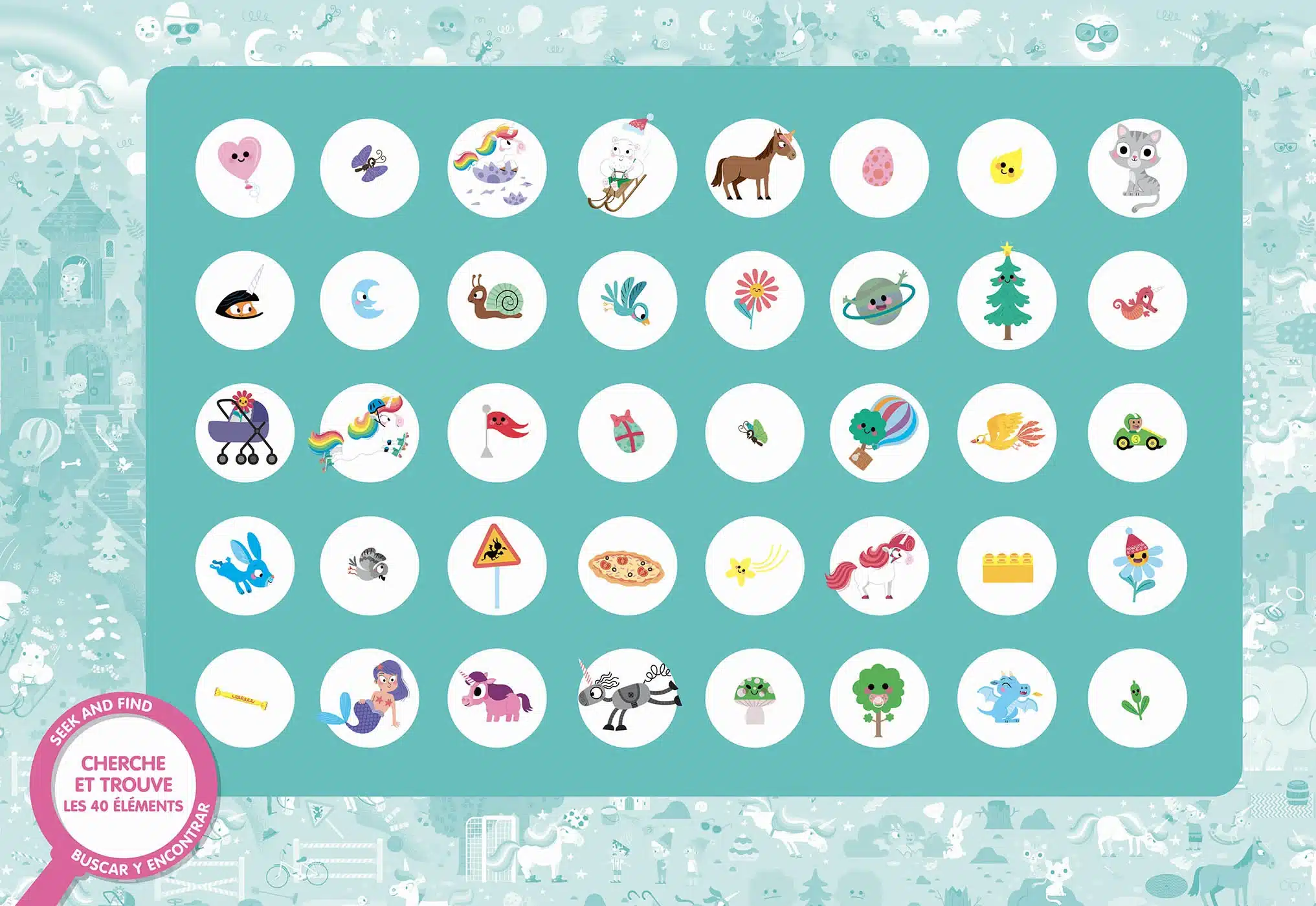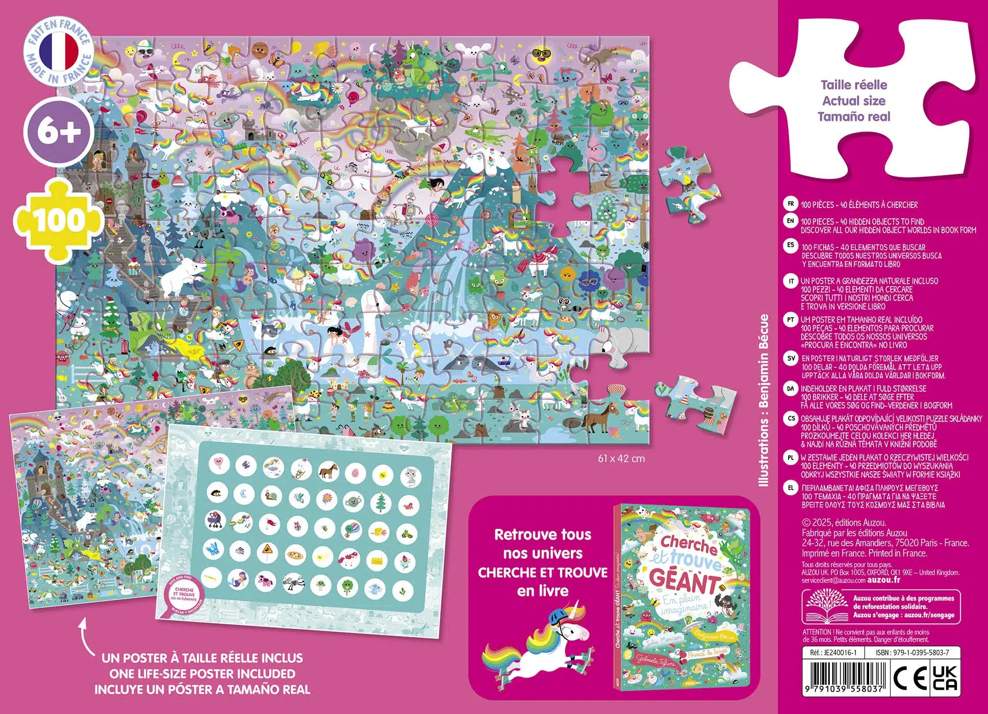 Avec un poster : au recto, la belle illustration ; au verso, les éléments à cherche et retrouver dans le puzzle !